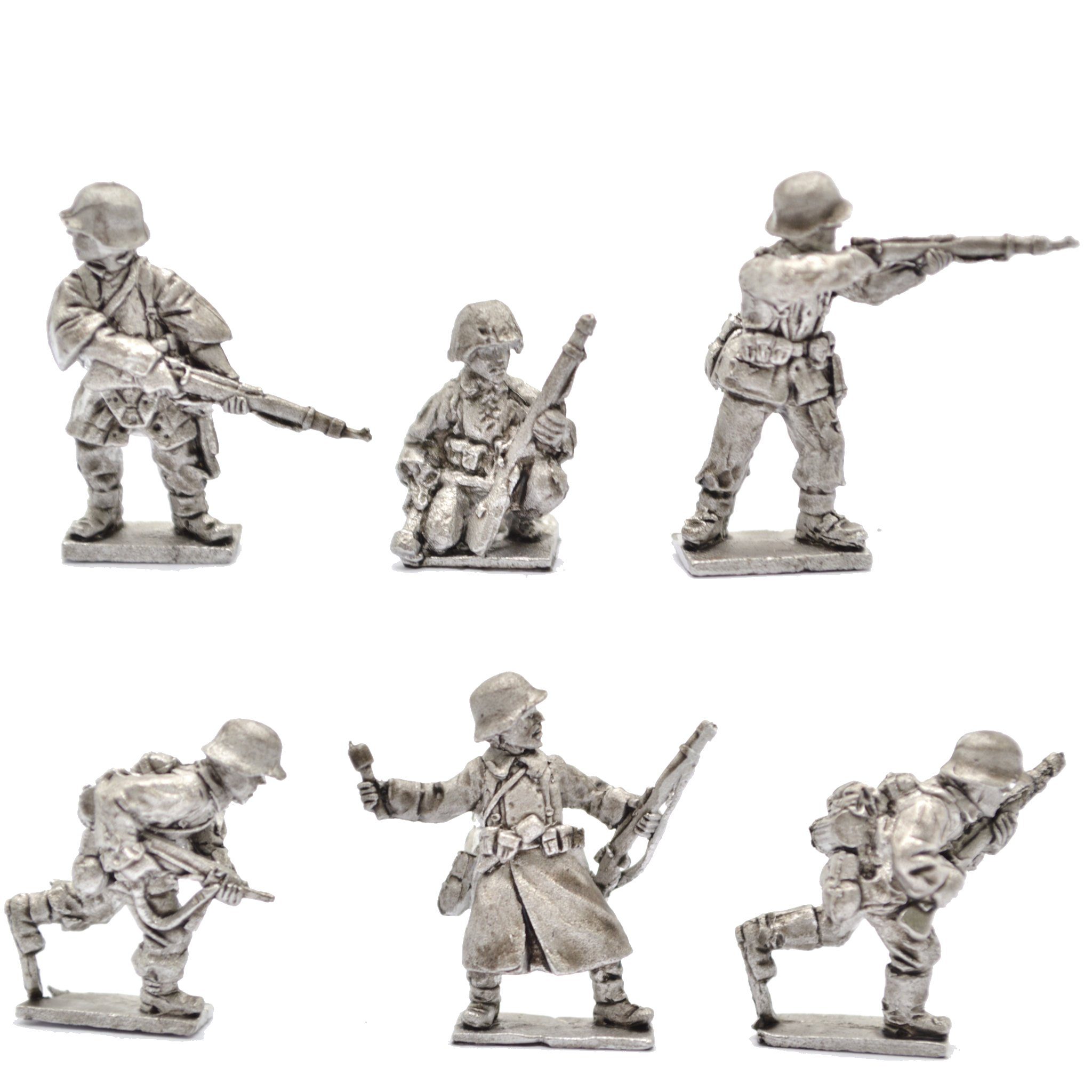 These DDW1 20mm WWII German Riflemen & MP40, are suitable for the following World War II campaigns. Russian campaign and for D-Day onwards. Dressed in a variety of uniforms and kit and as such may be used for either the Wehrmacht or the Waffen SS.