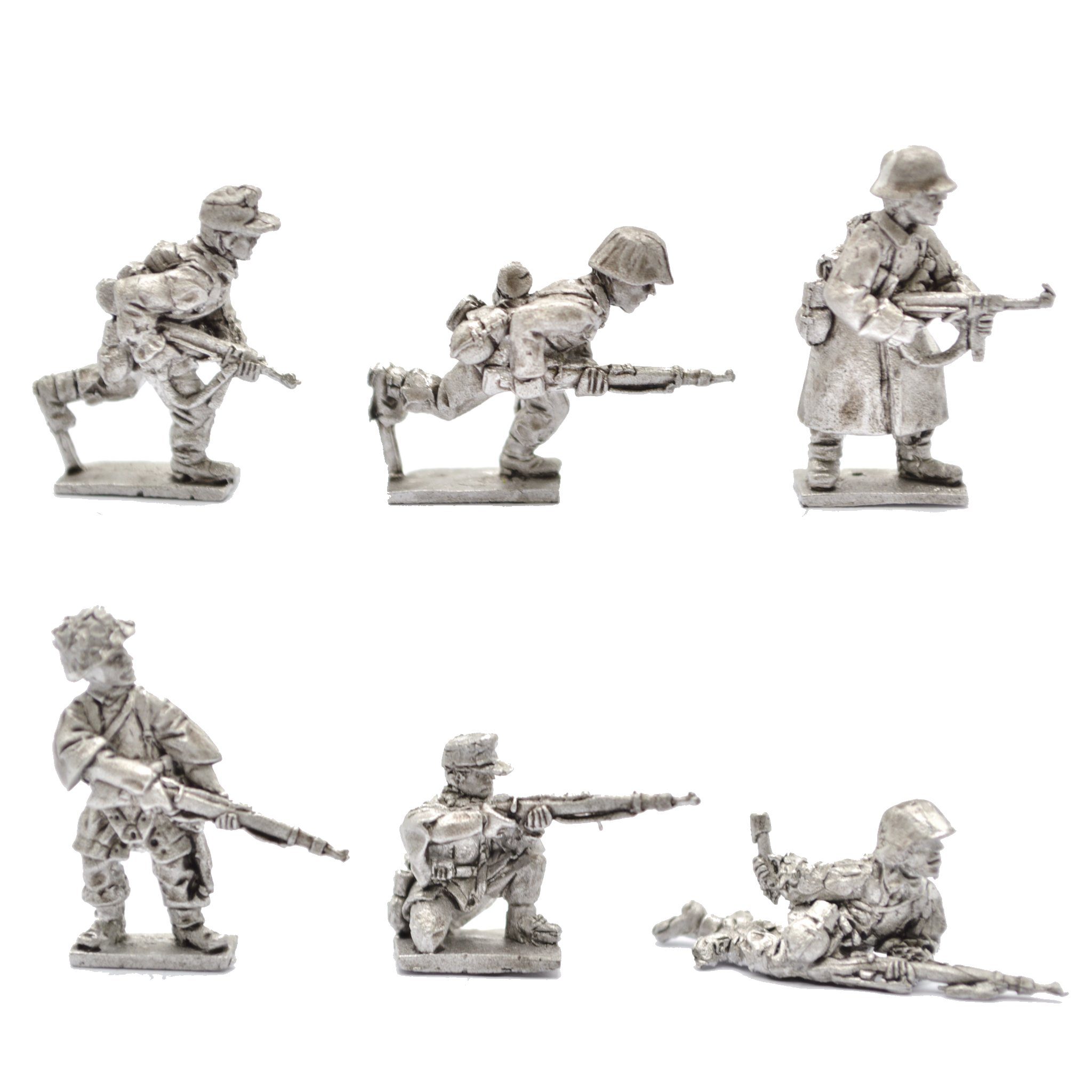 These DDW2 20mm WWII German Riflemen & MP40s are suitable for the following World War II campaigns. Russian campaign and for D-Day onwards. Dressed in a variety of uniforms and kit and as such may be used for either the Wehrmacht or the Waffen SS.