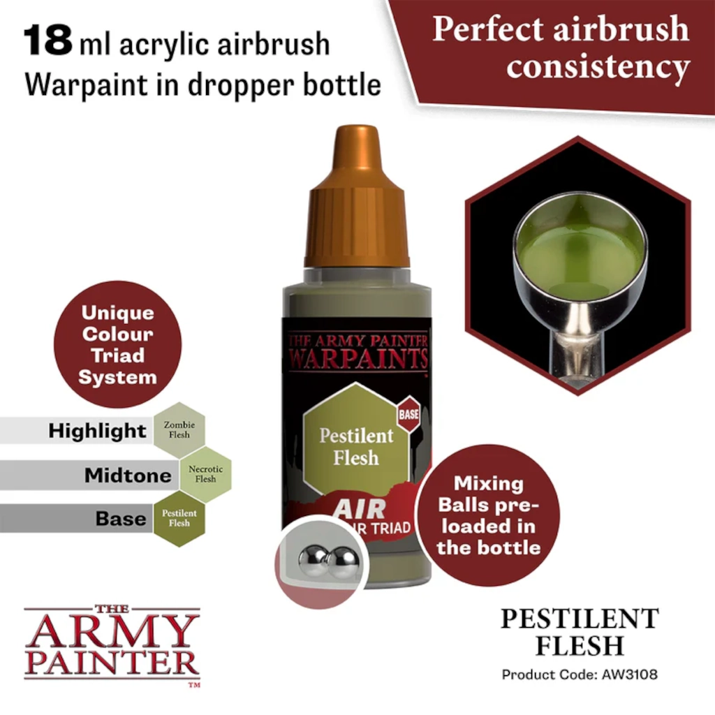 Warpaints Air AW1108 Necrotic Flesh 18ml is part of the Army Painter Warpaints Air Necrotic Flesh Colour Triad which includes: